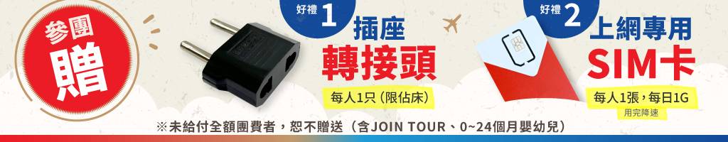 未給付全額團費者,恕不贈送(含JOIN TOUR、0~24個月嬰幼兒)