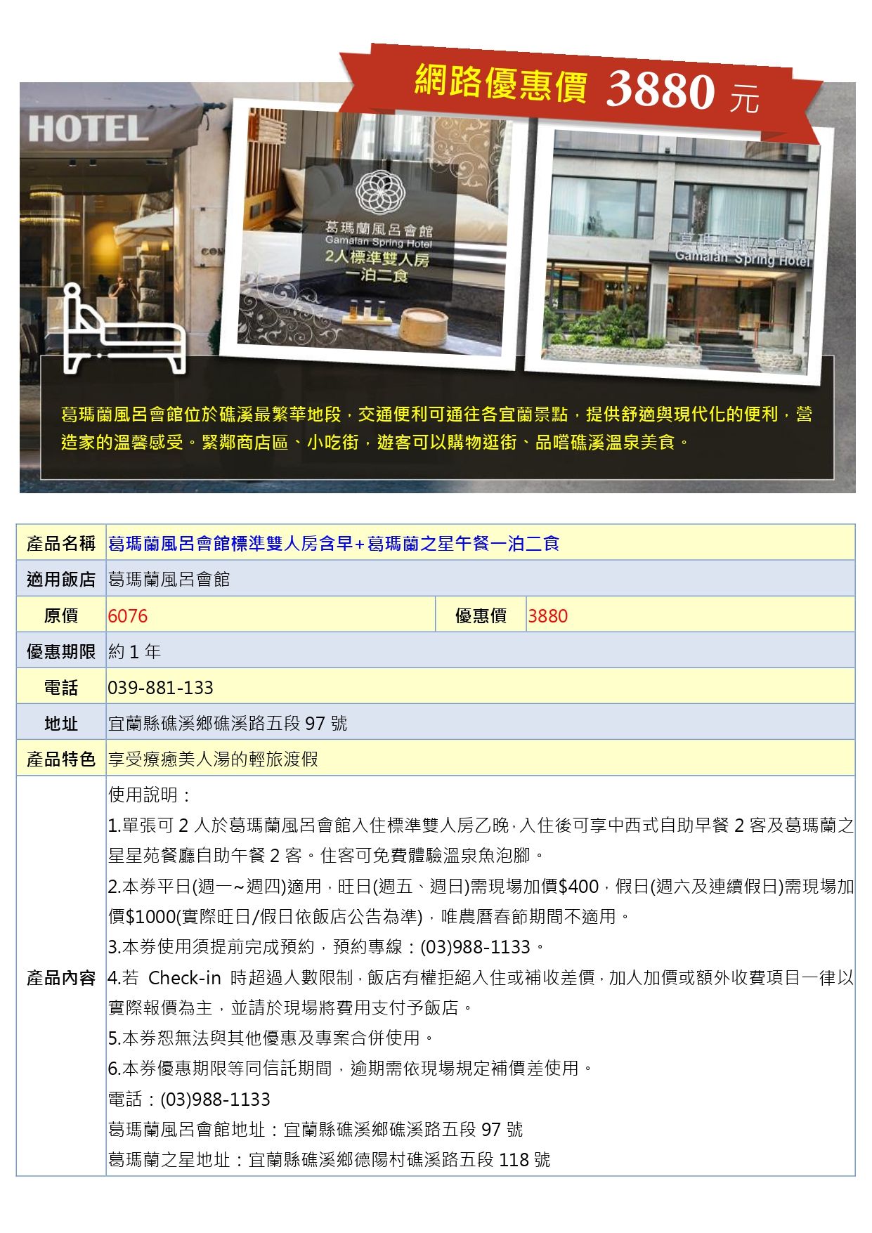 【宜蘭】葛瑪蘭風呂會館標準雙人房含早+葛瑪蘭之星午餐一泊二食