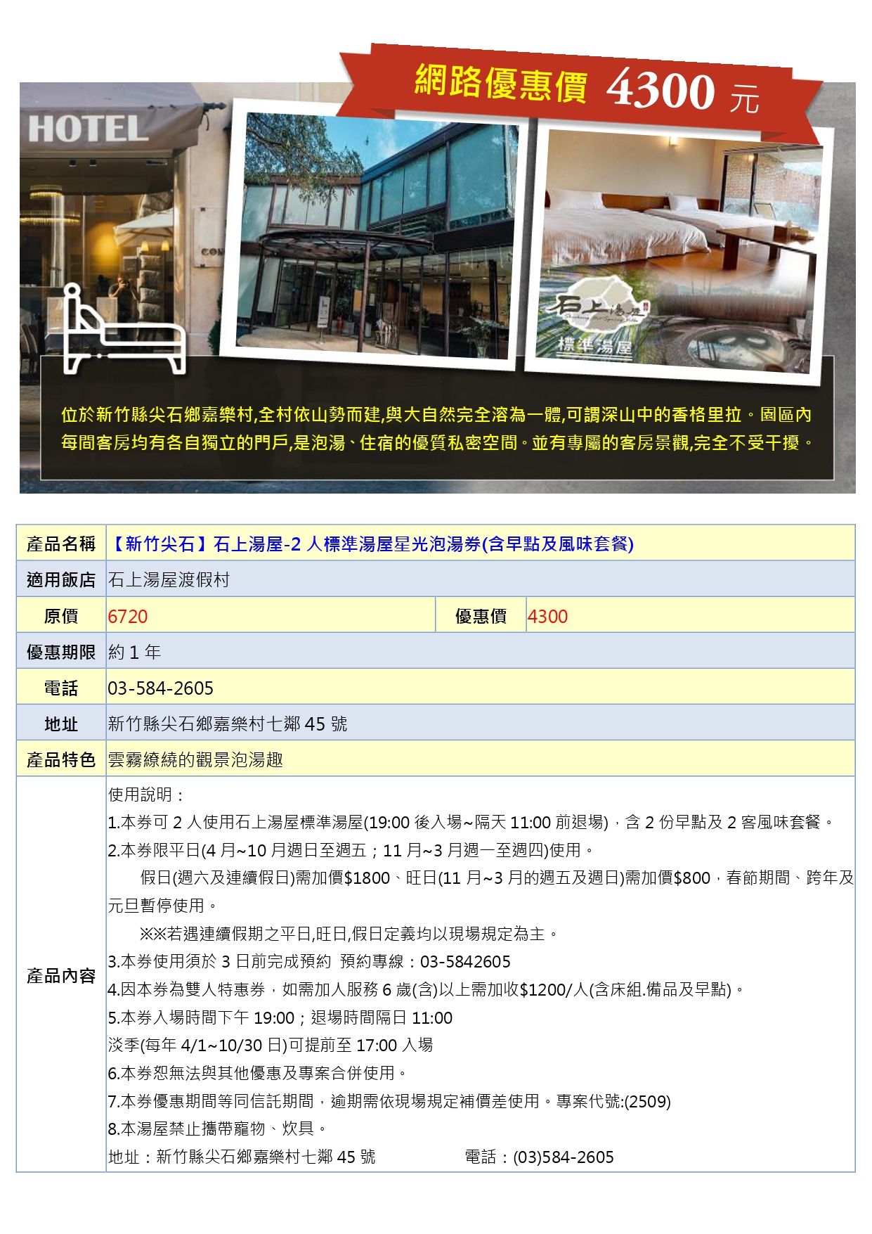 【新竹】尖石石上湯屋-2人標準湯屋星光泡湯券(含早點及風味套餐)